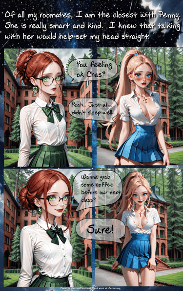 Sorry, this chapter isn't available to the public yet, but it is available for purchase right now. Support us to get early access to new chapters, bonus chapters, extra art, and more!